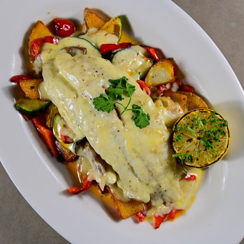 Lightly breaded and fried shrimp layered with marinara and mozzarella then baked